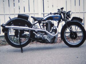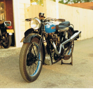 This Blue Star is a twin exhaust port 500cc single with exposed valve gear, magneto ignition and a generator for charging the Varley battery. 1932 makes it the first year of production and apparently also came as a 350cc model.